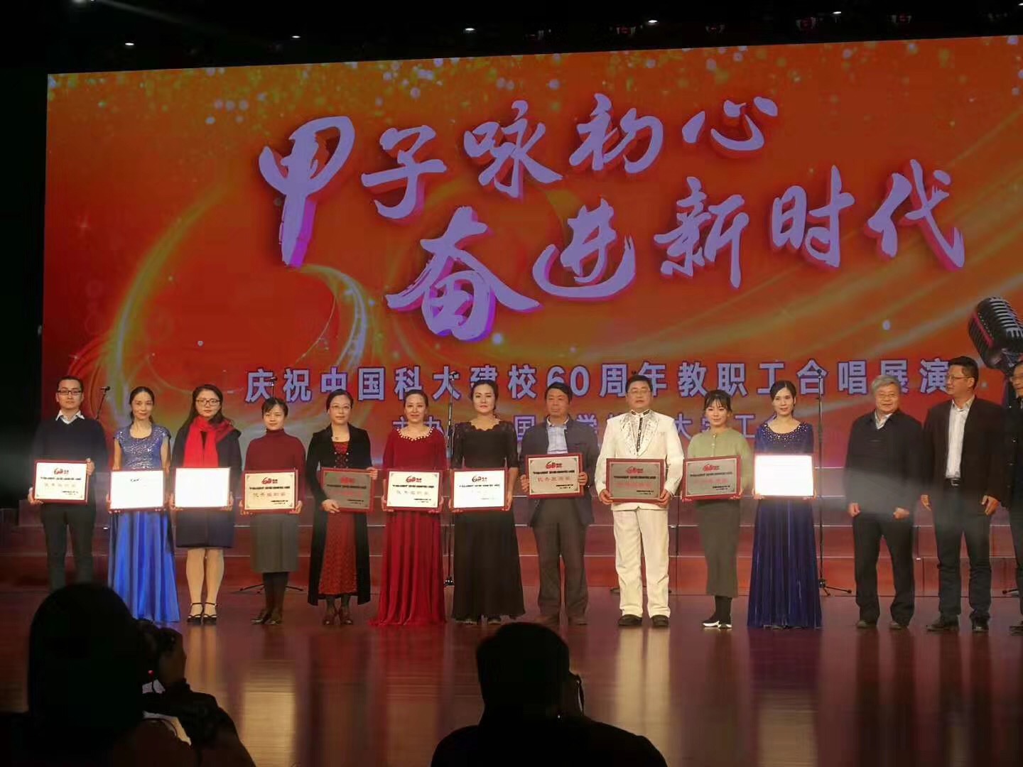 11月23日晚,“甲子咏初心,奋进新时代”教职工合唱展演在东区大礼堂举行,全校13支代表队和教工合唱团、离退办金秋合唱团共1000多名教职工参加演出。我院积极组队参加展演,围绕庆祝科大六十年华诞、奋进新时代这一主题,以蓬勃向上的精神风貌和深情铿锵的歌声表达了对科大美好未来的祝福以及对党、对伟大祖国深沉的热爱。