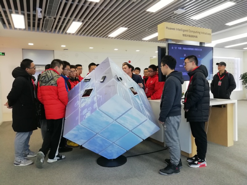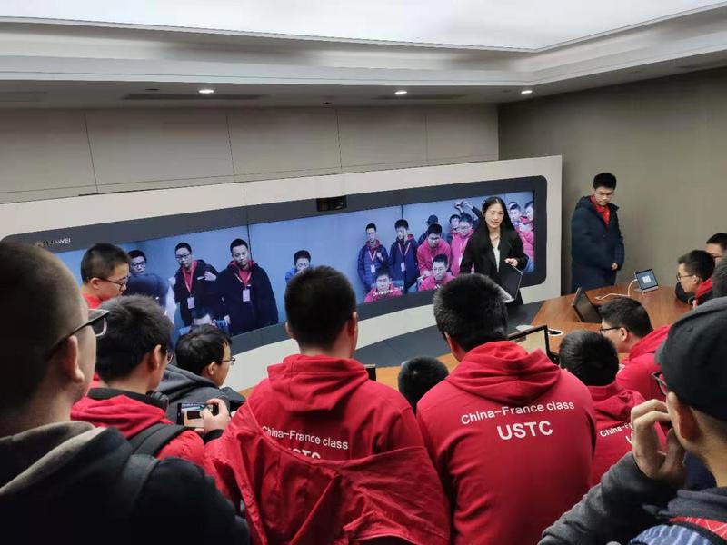 11月29日中午,中法数学英才班师生抵达华为杭州研究所。稍事休息后,同学们参观了华为杭州研究所的科技展厅。在讲解员的带领下,同学们对华为硬件和基站等核心业务有了初步认识,华为在技术创新和算法创新领域取得的诸多成果令同学们啧啧称奇。参观结束后,同学们在展厅合影留念。