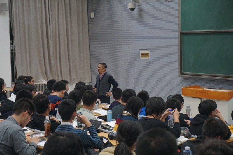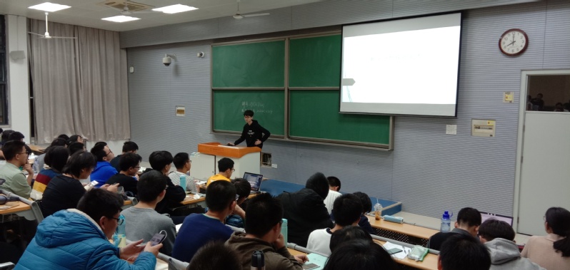 2018年12月8日晚七点,在第二教学楼2321,由中科大数学科学乐竞官网学生会主办的,面向大一新生的数学分析经验交流讲座如期举行。由在数院任教的任广斌教授担任主讲,周潇翔和曹鸿艺学长也参与了交流,在台上向大一新生分享了自己学习的方法和体会。