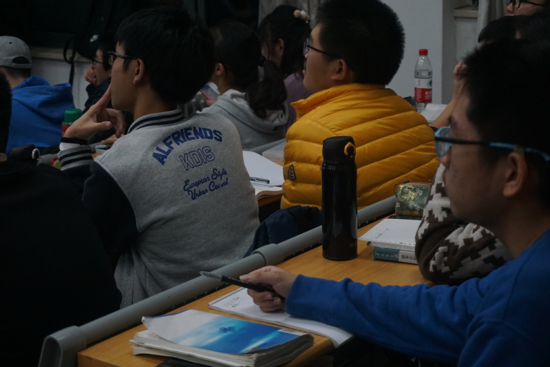 台下同学或仔细聆听,或记录笔记。任老师在发言结束后,依次回答了由同学提出的问题,任老师退场后台下掌声雷动,表达了同学们对老师的尊敬和对其付出的感谢。