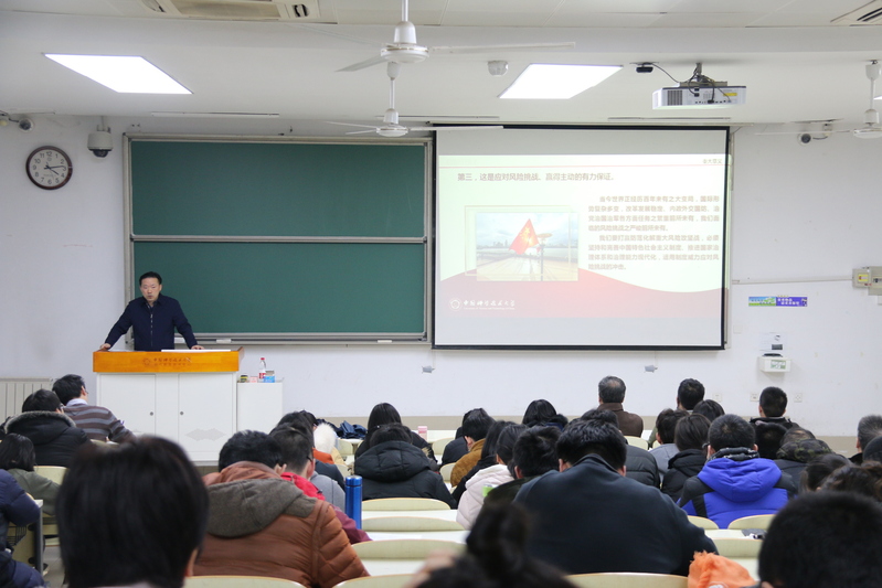 褚家如同志首先传达了十九届四中全会的会议背景及主要议程,从国内和国际背景阐明十九届四中全会的历史地位及深远影响。带领全体与会师生从四大板块系统学习了《中共中央关于坚持和完善中国特色社会主义制度、推进国家治理体系和治理能力现代化若干重大问题的决定》,特别详述了中国特色社会主义制度和国家治理体系的十三方面“显著优势”以及十三个“坚持和完善”。他还结合中共中国科学技术大学第十二次代表大会上提出的“潜心立德树人、执着攻关创新”两大核心任务,为与会师生进行了深入地解读,希望大家深入学习贯彻十九届四中全会精神,更加紧密团结在以习近平同志为核心的党中央周围,不忘初心、牢记使命,坚定信心,保持定力,锐意进取,开拓创新,坚持和完善中国特色社会主义制度、推进国家治理体系和治理能力现代化,以一流的管理水平和现代化的治理体系支撑中国特色、科大风格、世界一流大学建设!