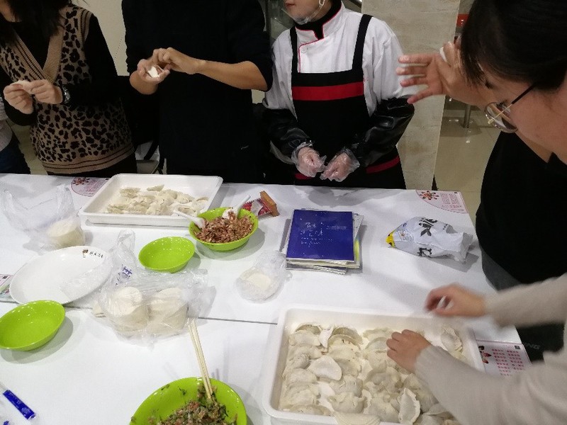 活动开始后,大家都十分积极踊跃。有几位会包饺子的同学主动给不会包饺子的同学教授方法,几位热心的食堂工作人员也跑来帮忙,场面十分热闹。