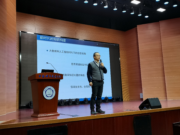 当晚,台下坐满了科大学子,期待着讲座的开始。经过主持人的简单介绍,在科大常年任教数学分析A1的任广斌教授上台作了报告。任老师所讲的内容分析了数学分析中的几对核心要点,并用极限的思想将其联系到一起。台下多为大一新生,任老师通过细致的讲解,梳理了数学分析的整体体系与相互之间的关联,使同学们受益颇多。