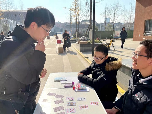 最受科大学霸们欢迎的游戏非“数字华容道”莫属了。游戏要求参与者在短时间内恢复被打乱的3*3,4*4或者5*5数字华容道。参赛的同学们低头不语,冷静而快速地移动华容道中的数字,尝试用巧妙快速的方法恢复华容道。虽然许多同学在童年时期就已经玩过华容道一类的游戏,但值得一提的是,当笔者还在试图了解游戏规则的时候,早有数学乐竞官网的同学计算出了最优解的移动步数,叫人好不佩服。
