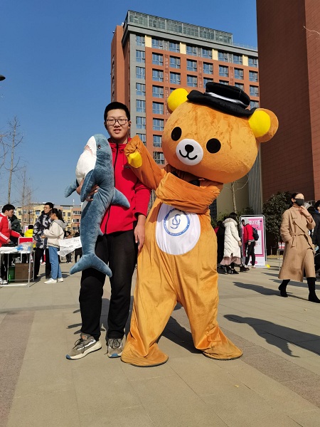 其他的游戏譬如“扬眉吐气”、“记忆大师”和“踢羽毛球”也同样受到了参与者的欢迎。然而要说现场的人气明星,还是我们可爱的数分熊。憨态可掬的数分熊引来了不少同学和小朋友上前合照拥抱。许多小朋友们也因为数分熊的吸引,在家长的陪同下玩起了小游戏。在他们稚嫩的小脑袋里或许还没有数学物理的知识,但笔者不禁畅想,多年之后,当他们成长为如你我一般的青年、在学习数理知识时,是否会回想起童年这些有趣的的小游戏呢?这些暗藏深刻科学原理的游戏,又是否会成为他们科学的启蒙呢?