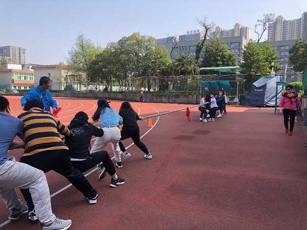 之后同学们转战东区田径场,在这里同学们自由分组,进行了一场趣味拔河比赛。比赛一开始双方队伍都气势如虹,蓄势待发。在比赛中双手紧握长绳,团结一心。尤其是在胜负难分的时刻,双方队伍毫不退却,坚持到底,他们用汗水阐述了团结的含义,他们顽强的毅力和拼搏的精神让每个人感动,经过激烈的角逐最终敲定战局,拔河比赛圆满结束。