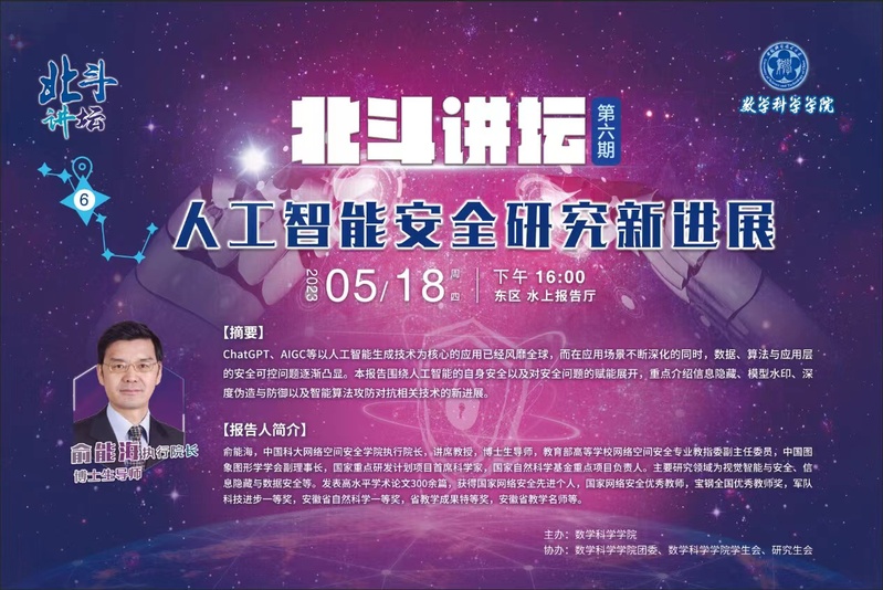 05-18【俞能海】水上报告厅 北斗讲坛第六期:人工智能安全研究新进展