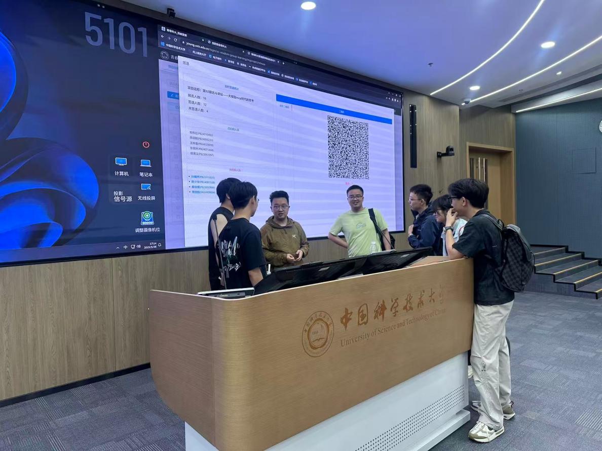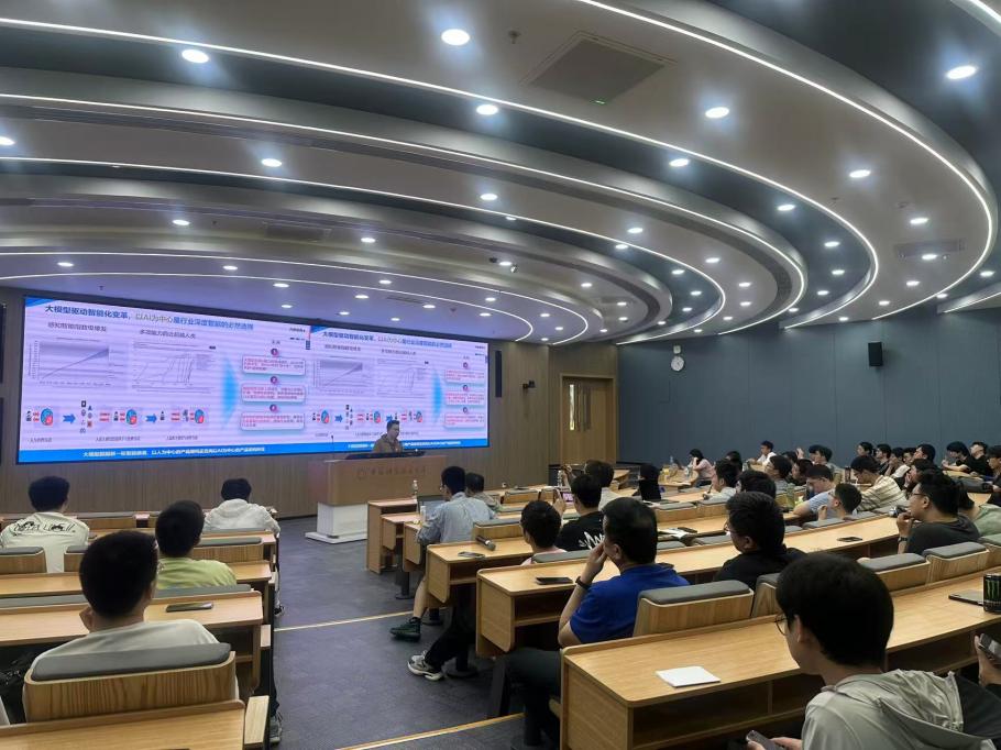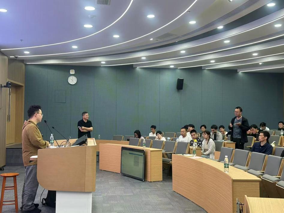 交流环节中,现场师生踊跃提问。针对同学提出的大模型调用应用程序过程中的隐私保护等一系列问题,刘昆麟博士从专业视角进行了细致解答。针对刘利刚教授提出的人工智能与教育的相关问题,他也分享了独到见解。