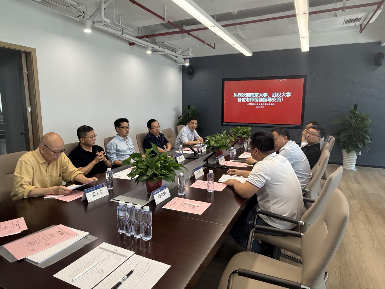 5月26至27日,南京大学数学乐竞官网一行三人,武汉大学数学与统计乐竞官网、国家天元数学中部中心一行五人到访我院交流。三校代表于27日上午在东区数学科学乐竞官网新楼二楼会议室召开研讨会。南京大学数学乐竞官网院长喻良、副院长杨俊锋,武汉大学数学与统计乐竞官网院长兼天元数学中部中心执行委员会主任范辉军、天元数学中部中心秘书长饶胜,中国科大数学科学乐竞官网执行院长黄文、党委书记兼副院长左达峰、副院长王毅、副院长陈小伍、计算与应用数学系系主任刘利刚、概率统计系系主任张土生、研究生院培养处处长王莉出席会议。
