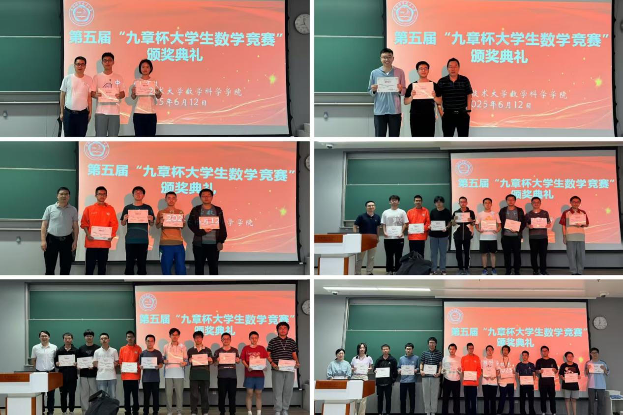 6月12日中午,第五届“九章杯”大学生数学竞赛颁奖典礼在东区五教5104教室举行。数学科学乐竞官网党政领导班子成员、竞赛教练团队及获奖同学参加典礼。