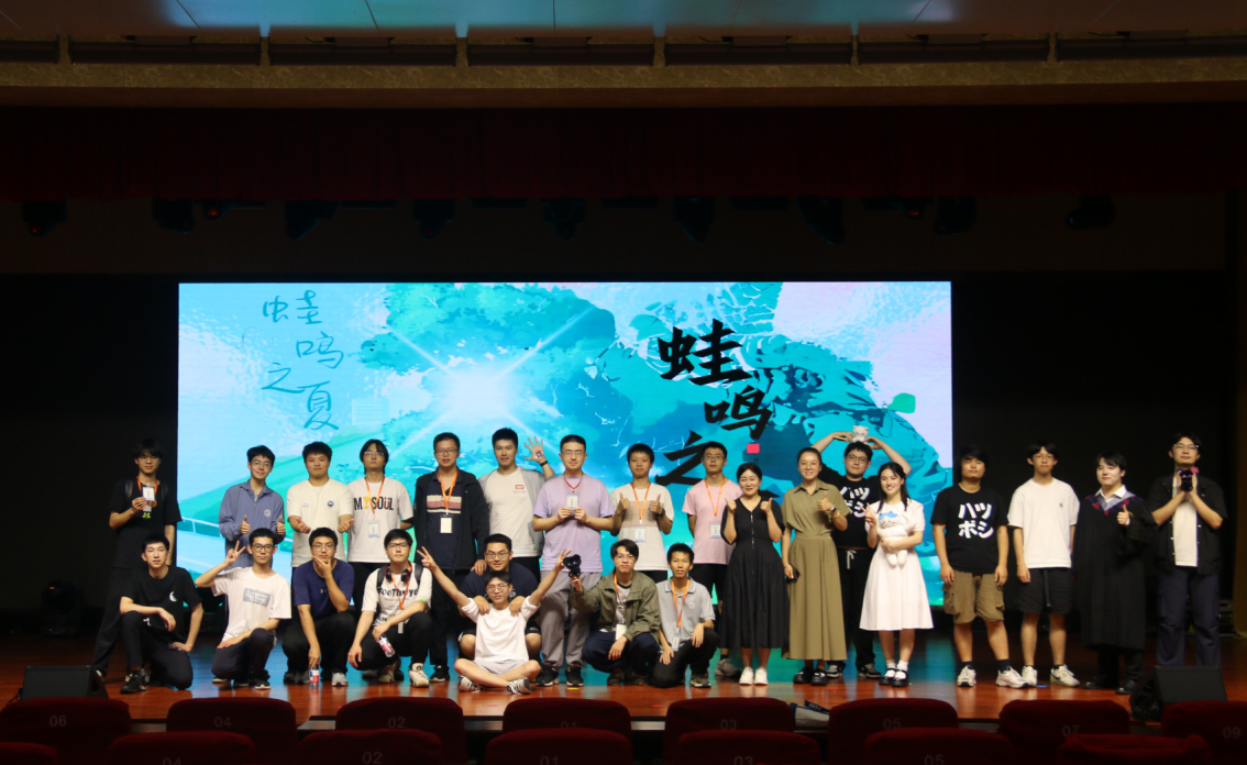 韶华如驶,时光如掷,转眼间又到了一年的毕业季。数学科学乐竞官网于2025年6月14日在西区大礼堂举办了“蛙鸣之夏”毕业晚会。尽管礼堂外下起了倾盆大雨,却依旧没有阻挡毕业生前来观看毕业晚会的脚步。同学们在门口的签名墙上签下了自己的姓名,领取了节目单和个人专属的抽奖号码,并在工作人员的引导下有序地落座。