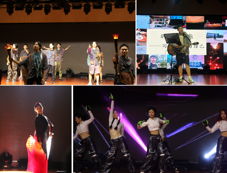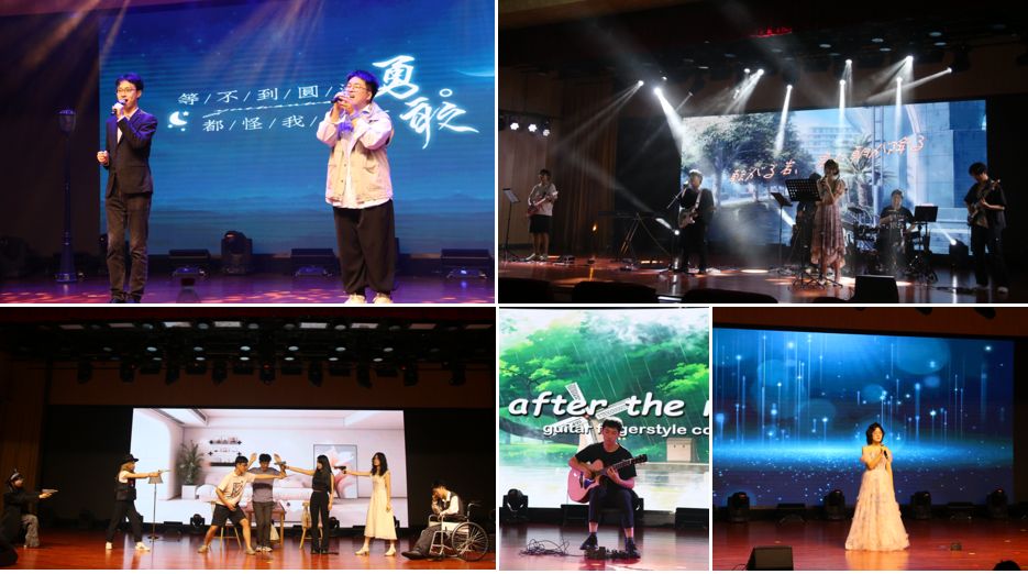 接下来进入晚会的节目表演环节,活动现场异彩纷呈,表现形式多样,覆盖舞蹈、独唱、喜剧、配音、乐队等多种表演形式,带给观众一场精彩的视听盛宴。有同学为自己的大学四年生活写了一首歌,唱出了自己珍藏四年的感悟与回忆。歌曲中流露出对自己大学生活的怀念与对母校的不舍,配合上吉他的乐声,深深地感动了在场的毕业生。原创喜剧《惊天大劫案》。表演创造性地融合了许多科大学生熟悉的“劳学时”“GPA”等元素,引起观众的共鸣,同学们在笑声中回忆着自己的大学生活。