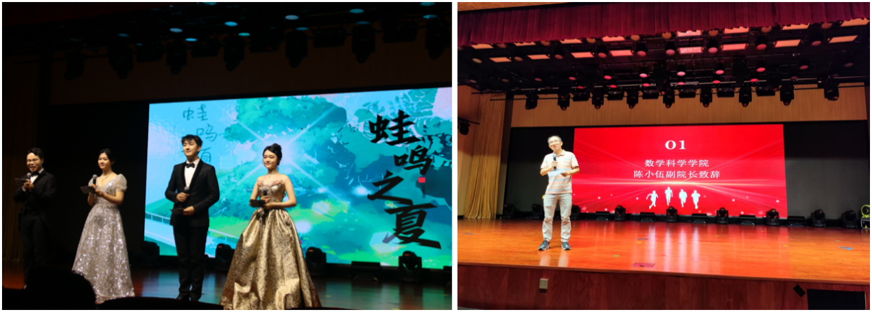晚上七点,在观众们的热烈地掌声中,毕业晚会正式拉开了序幕。礼堂上的大屏幕开始播放为毕业生制作的毕业生相册,将每一位观众四年的大学记忆重新拉回眼前。在同学们热烈的掌声中,数学科学乐竞官网副院长陈小伍老师上台为晚会致辞,为各位毕业生送上了最温暖的祝福与期待。