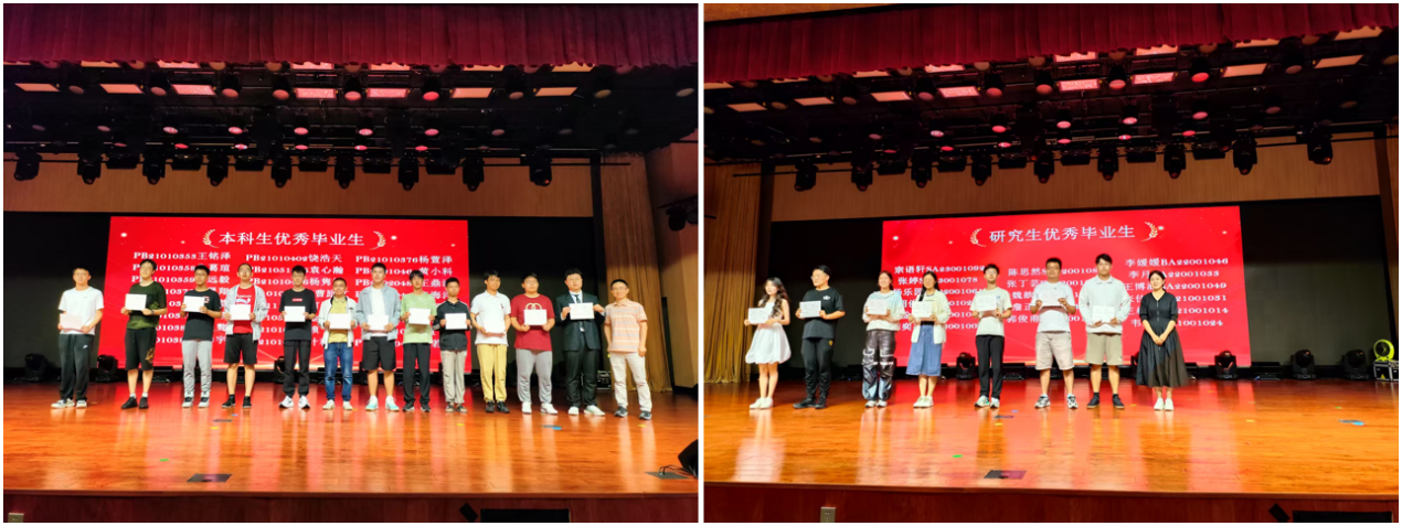 接下来是优秀毕业生的颁奖环节,数学科学乐竞官网副院长陈小伍老师和数学科学乐竞官网党委副书记郑芳老师分别为本科生优秀毕业生和研究生优秀毕业生颁奖。