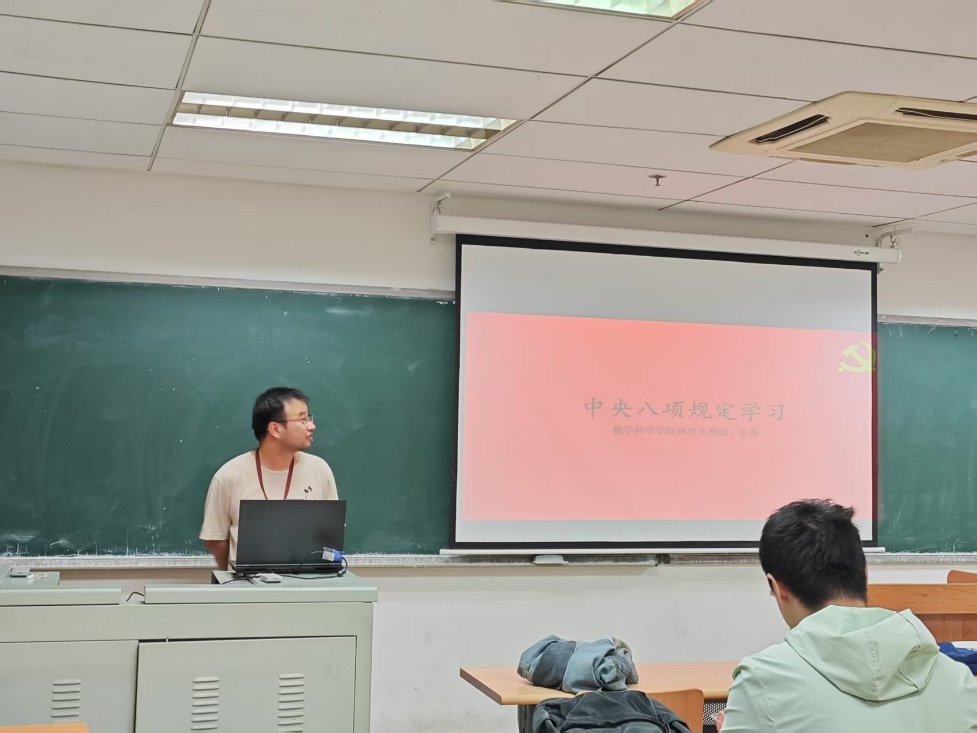 2025年4月23日下午,乐竞官网研究生基础数学第一党支部在5202组织开展了集中学习中央八项规定精神的活动。本次学习旨在深化党员对中央八项规定精神的理解,增强党员的纪律意识和规矩意识,推动全面从严治党向纵深发展。