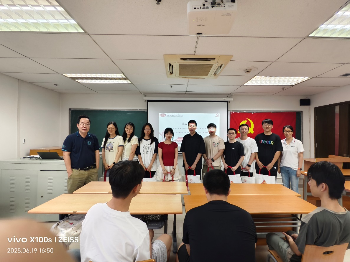 活动伊始,现场精心准备的茶点和小食为交流营造了轻松愉悦的氛围。黄稚新老师首先致辞,向毕业生党员表达了诚挚的祝福,感谢他们为党支部作出的贡献,并勉励他们在未来的道路上不忘初心、勇敢追梦。随后,毕业生代表韦磊学长分享了宝贵的科研经验,耐心解答了学弟学妹们的疑问。同学们踊跃发言,互相探讨问题,在思想的碰撞中收获了新的启发。