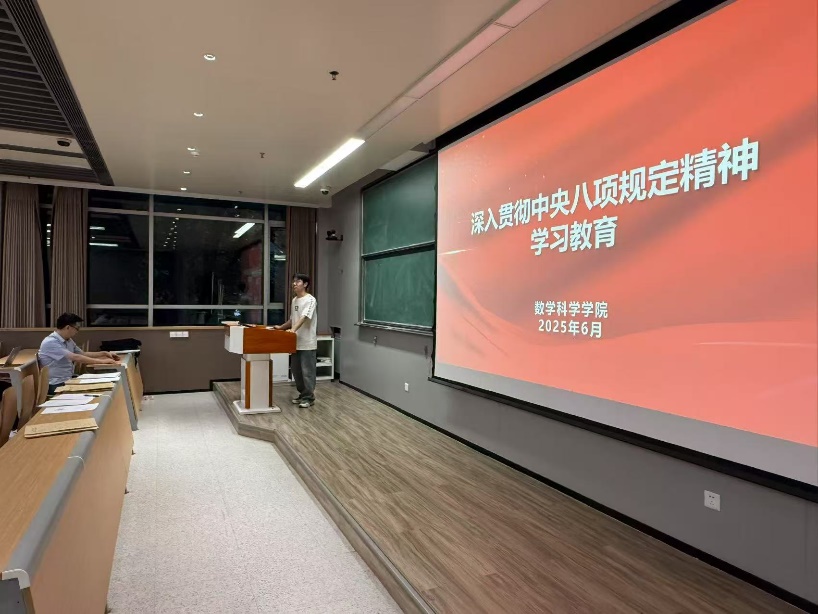 为扎实推进深入贯彻中央八项规定精神学习教育,筑牢拒腐防变思想根基,将中央精神传递到年轻的本科生党员身上,数学科学乐竞官网执行院长黄文于2025年6月17日晚委本科生第一党支部讲授专题党课。本科生第一支部全体党员,预备党员与积极分子参加会议。