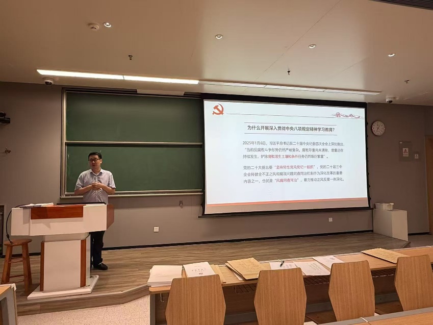 黄文院长重点强调了为什么要开展深入贯彻中央八项规定精神学习教育。党中央决定,自2025年全国两会后至7月在全党开展深入贯彻中央八项规定精神学习教育。这次学习教育,是习近平总书记亲自点题、亲自部署的一项重要工作,也是今年党建工作的一项重点任务。习近平总书记高度重视,发表重要讲话,作出重要指示,为开展学习教育提供了根本遵循、指明了努力方向。经过教育,同学们也深感这次学习责任重大,对中央八项规定精神的领悟达到了一个新高度。