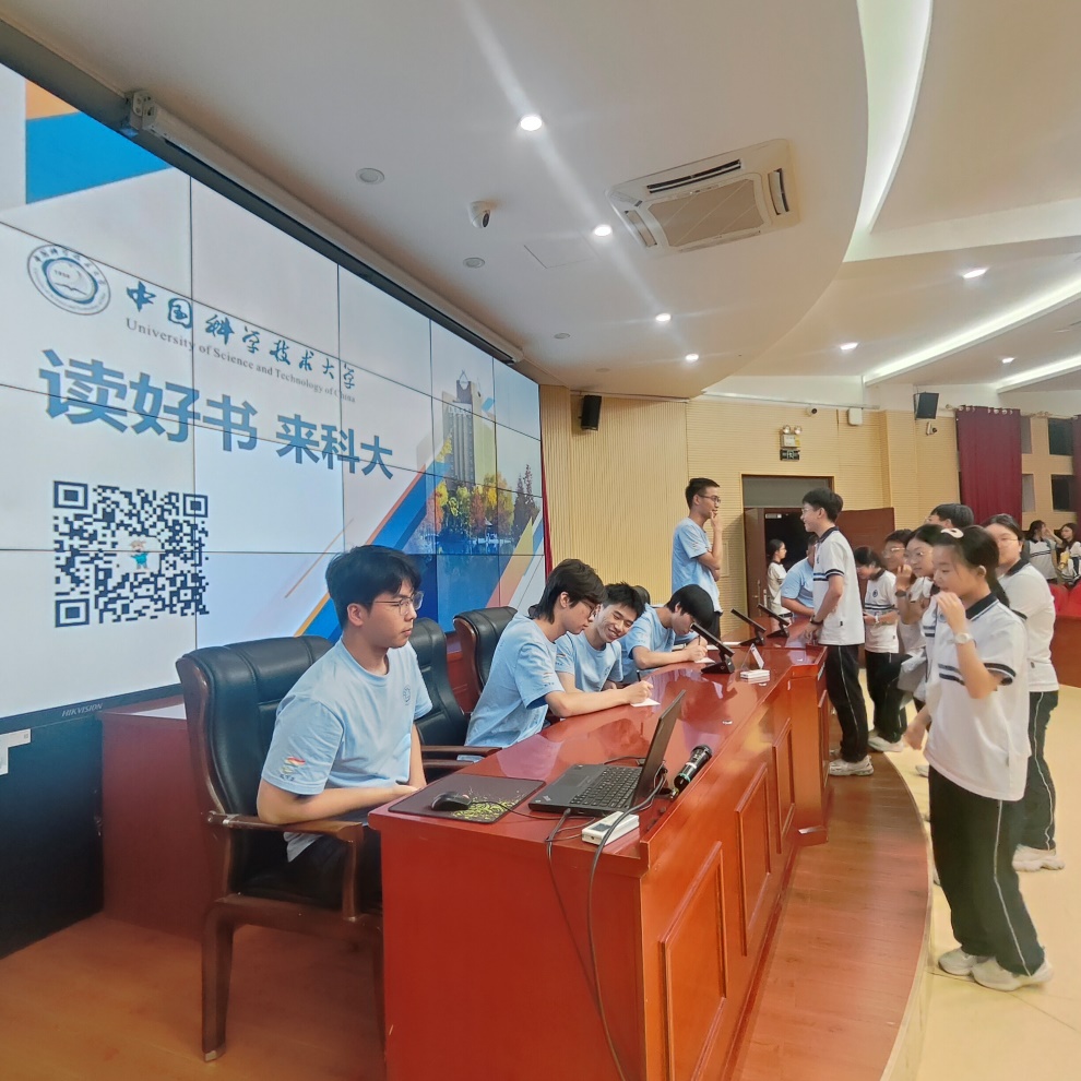 11日下午,实践队来到青田中学开展交流活动。姚琼为青田中学新高二学生作了关于中国科大的专题报告,系统介绍学校发展、学科优势及人才培养特色。四名实践队员结合自身经历,分享了高效学习方法和成长心得,激发了青田学子对高等学府和科学探索的向往。当天晚上,围绕中国科大特色招生项目(如强基计划、少年班创新试点班)以及陈秀雄教授的卓越学术成就,实践队员举办了专题讲座。现场互动氛围热烈,青中学子提问踊跃,讲座结束后仍有多名学生留下与实践队员进行深入交流,展现了强烈的求知欲和对未来的美好憧憬。为进一步弘扬科学家精神,实践队向同学们发放了中国科大科学家精神画册,引导同学们树立科学梦想,培养科学兴趣。
