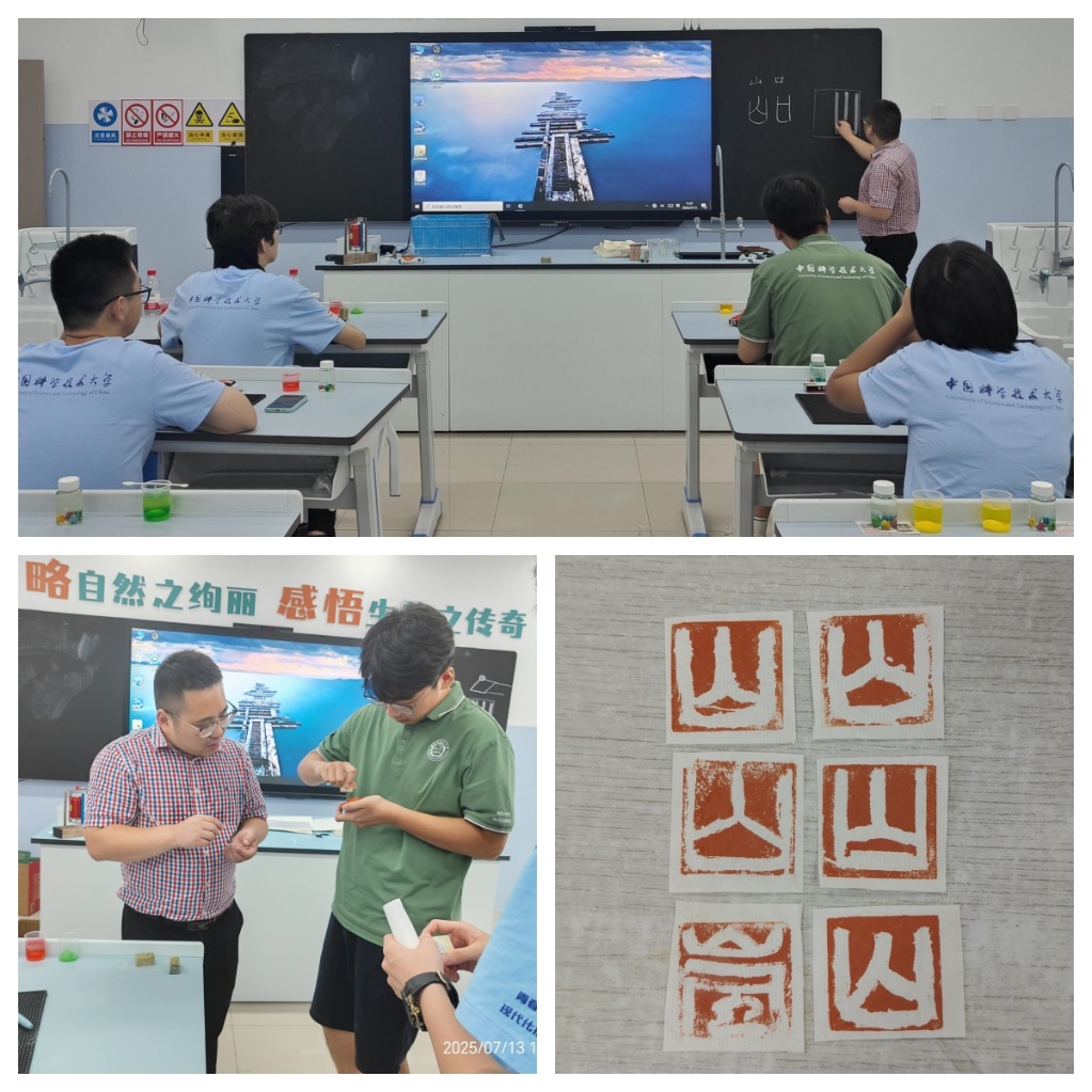 讲座后,山口镇中还特别安排了具有地方特色的山口篆刻体验。在专业老师的指导下,实践团成员学习了篆刻技艺,沉浸式体验了青田石雕文化的魅力,深刻感悟中华传统艺术的博大精深。