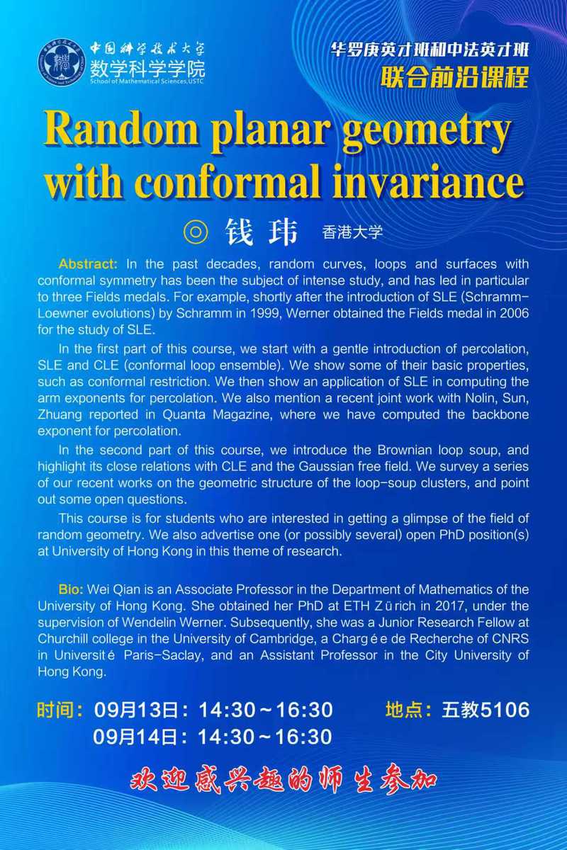 【09月13日-09月14日】华罗庚英才班和中法英才班联合前沿课程