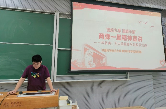 乐竞官网“两弹一星”精神宣讲团成员以 “数启九章,星耀华夏”为主题,围绕我校数学系首任系主任、中国科乐竞官网院士华罗庚的爱国情怀开展“两弹一星”精神宣讲,聚焦华老先生放弃海外优厚待遇、两度毅然归国的科研人生。华老先生创立“优选法”和“统筹法”、推动中国早期计算机研制,为大国重器的诞生提供了独特的“数学注脚”,他的事迹让“两弹一星”精神从抽象概念转化为数院学子可感可及的榜样力量。