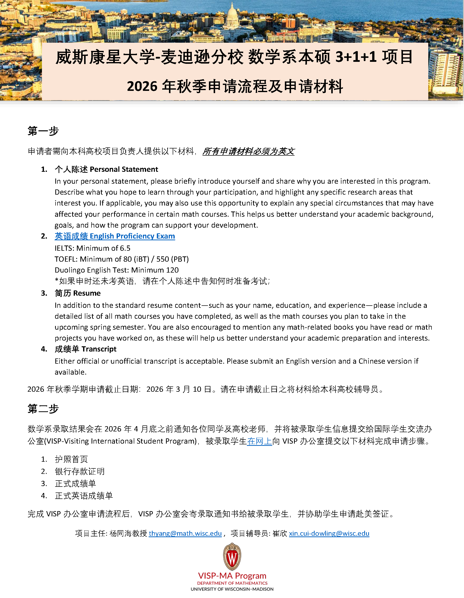请在2026年3月10日之前在网站:https://go.wisc.edu/56ksyw提交申请材料。